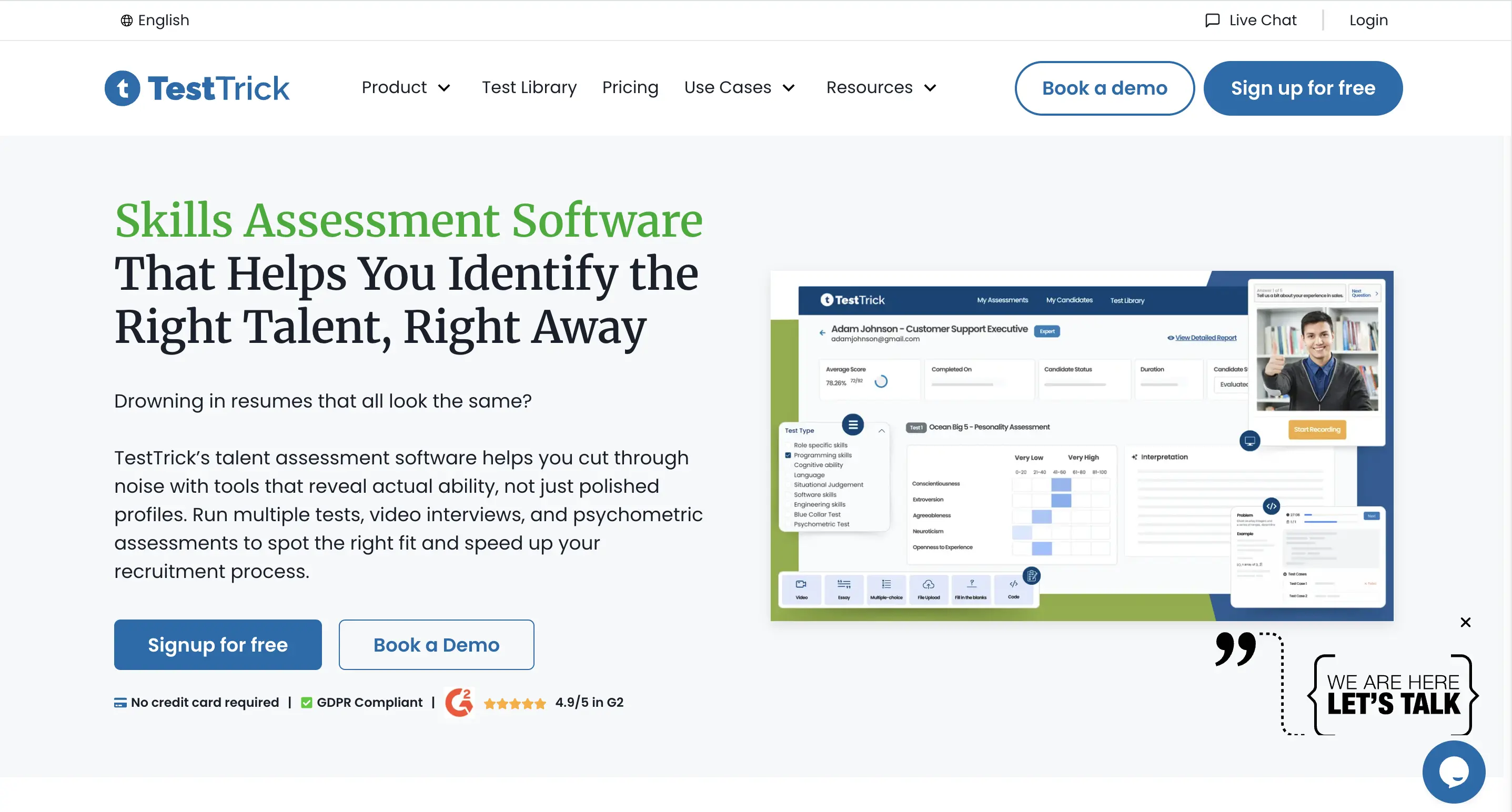 TestGorilla is a pre-employment testing platform that combines skills assessments with built-in anti-cheating measures. It focuses on asynchronous screening and provides automated integrity checks to help recruiters identify suspicious behavior during remote tests.