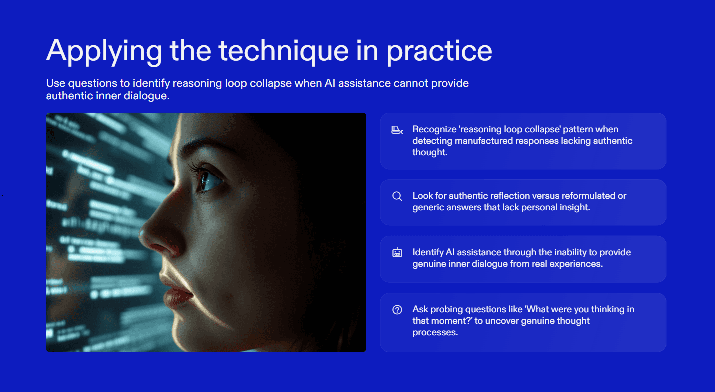 Interviewers should focus on cognitive markers, reasoning structure, and conversational adaptability, not written linguistic traits.