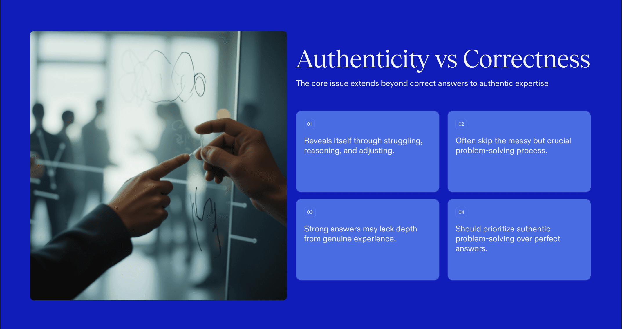 The problem is not just correctness. It is authenticity. Real expertise shows up in how someone struggles, reasons, adjusts, and explains trade-offs. AI tools like Copilot often skip that messy but important process, producing answers that appear strong on the surface but lack the depth that comes from lived problem-solving experience.