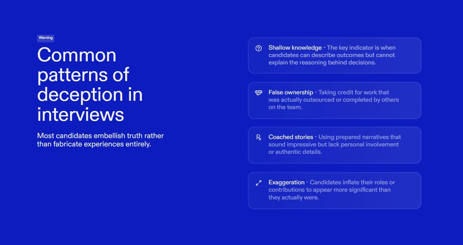 Understand the common warning signs of dishonesty in interviews and how to verify information without making assumptions or harming candidate trust.
