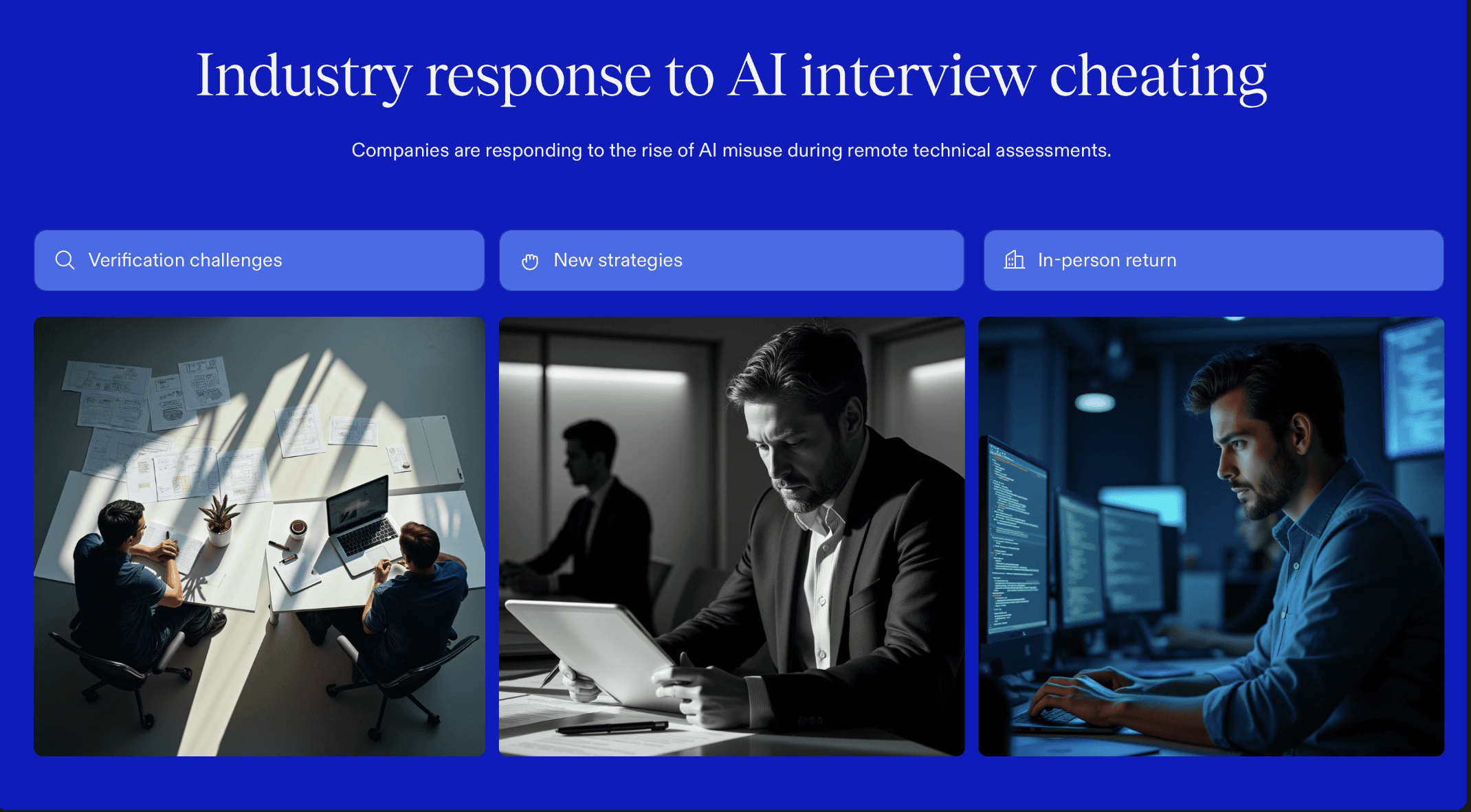 Before we talk about solutions, it’s critical to understand how candidates are actually gaming technical interviews today, from AI-powered tools to identity fraud. These issues are not hypothetical; employers and the media are documenting them as real problems reshaping hiring.