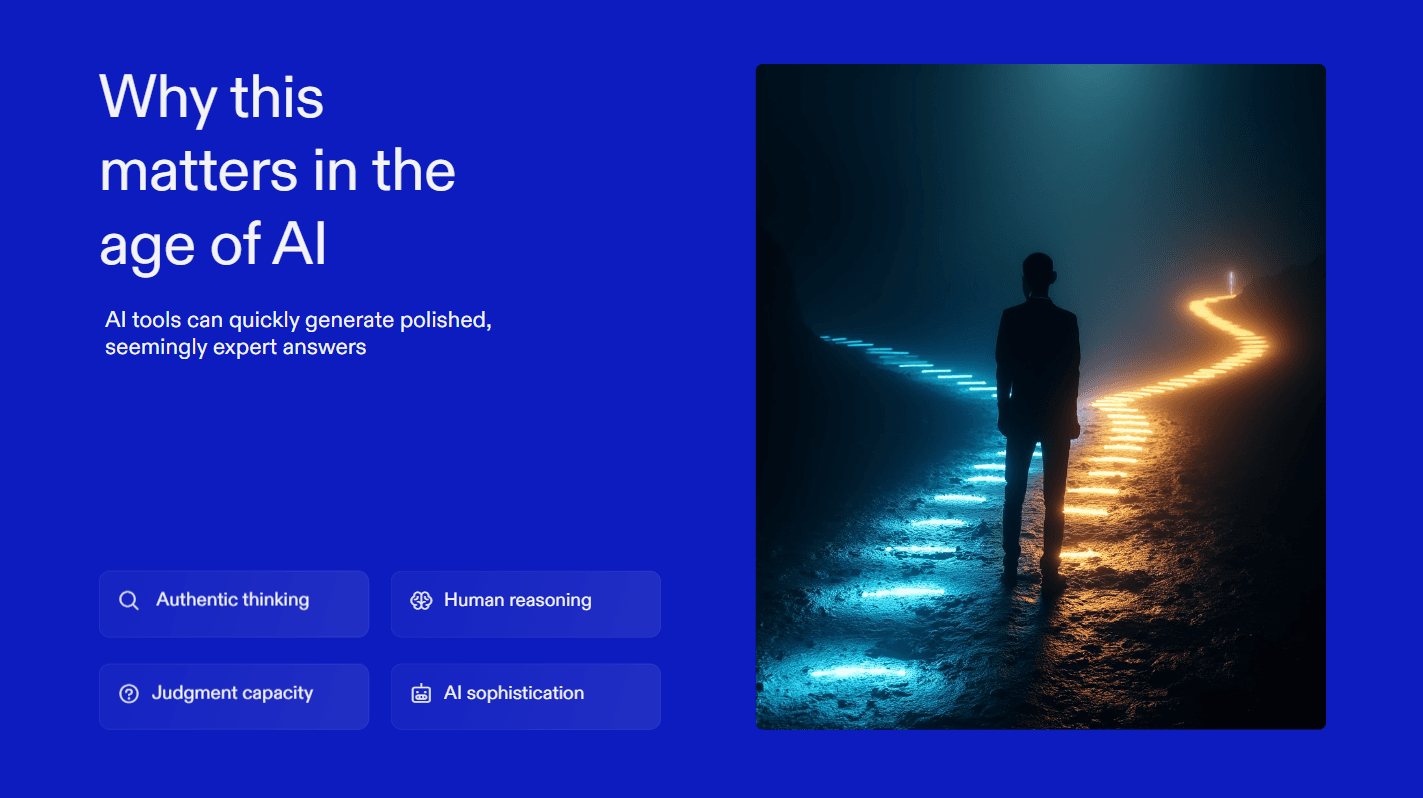 AI can generate polished answers quickly. It struggles when asked to explain personal reasoning, uncertainty, and judgment in real time.