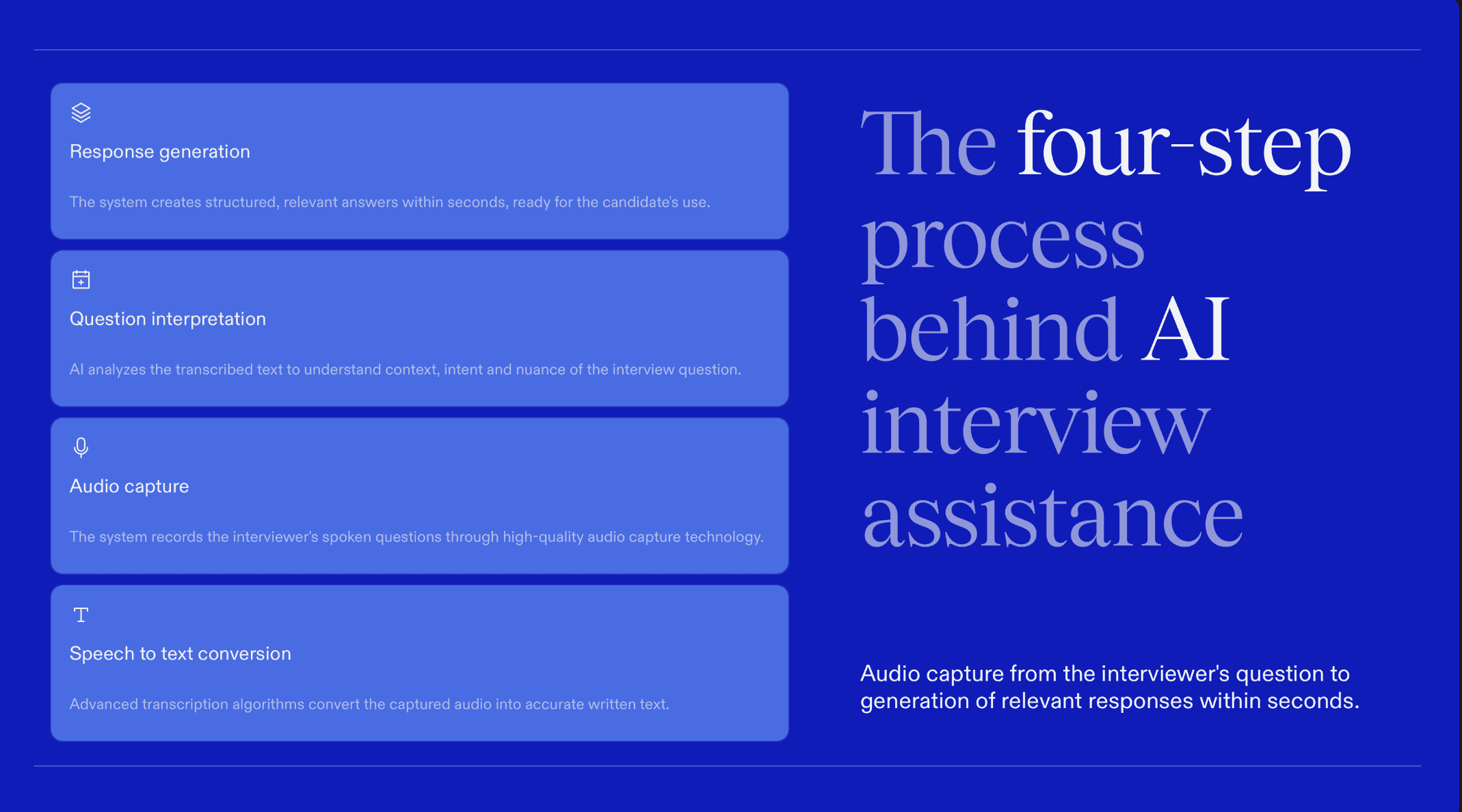 At their core, these copilots combine live transcription with instant answer generation. As soon as an interviewer asks a question, the AI: