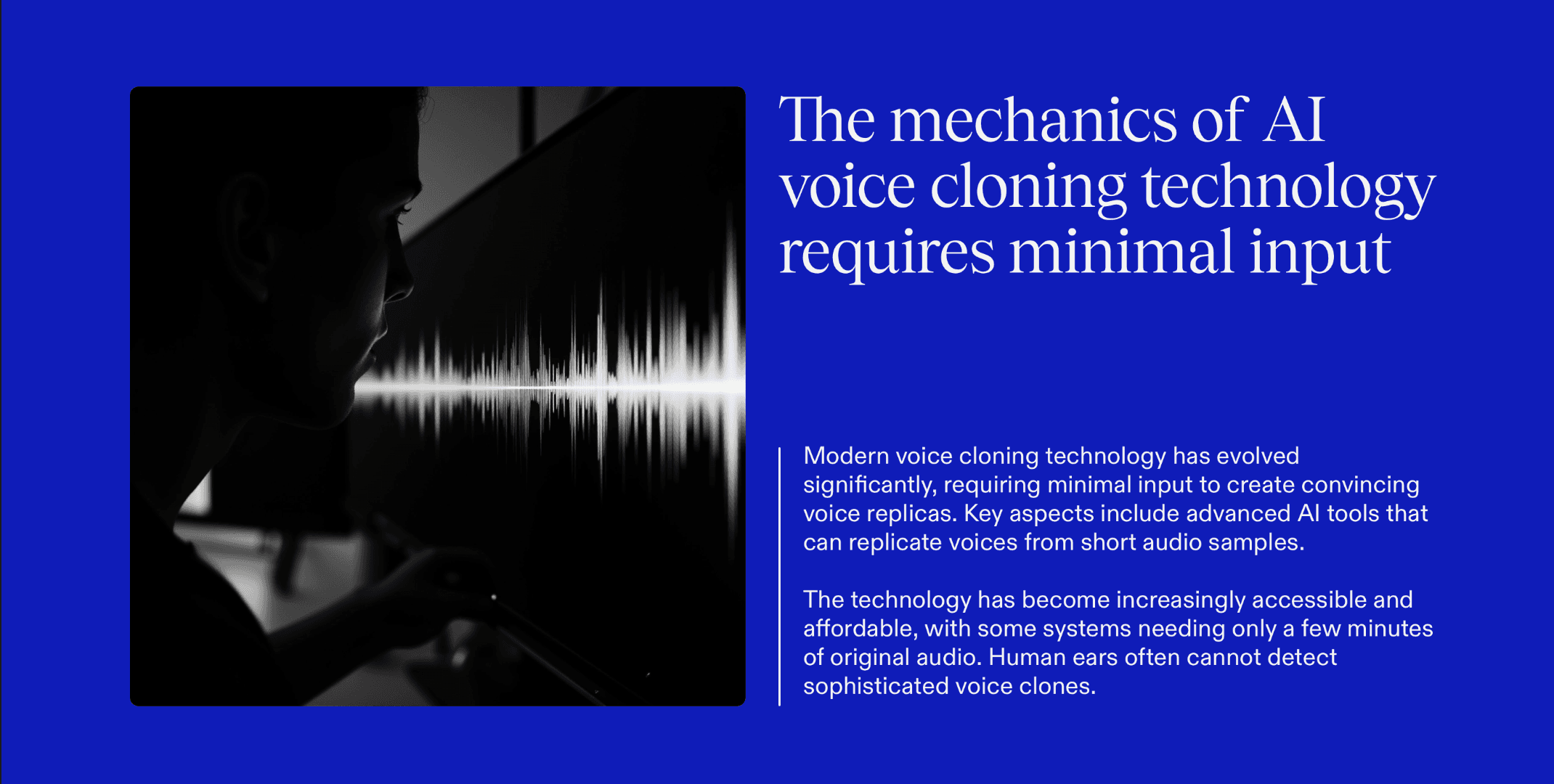 These techniques are increasingly accessible, low-cost, and hard to detect with the human ear alone.
