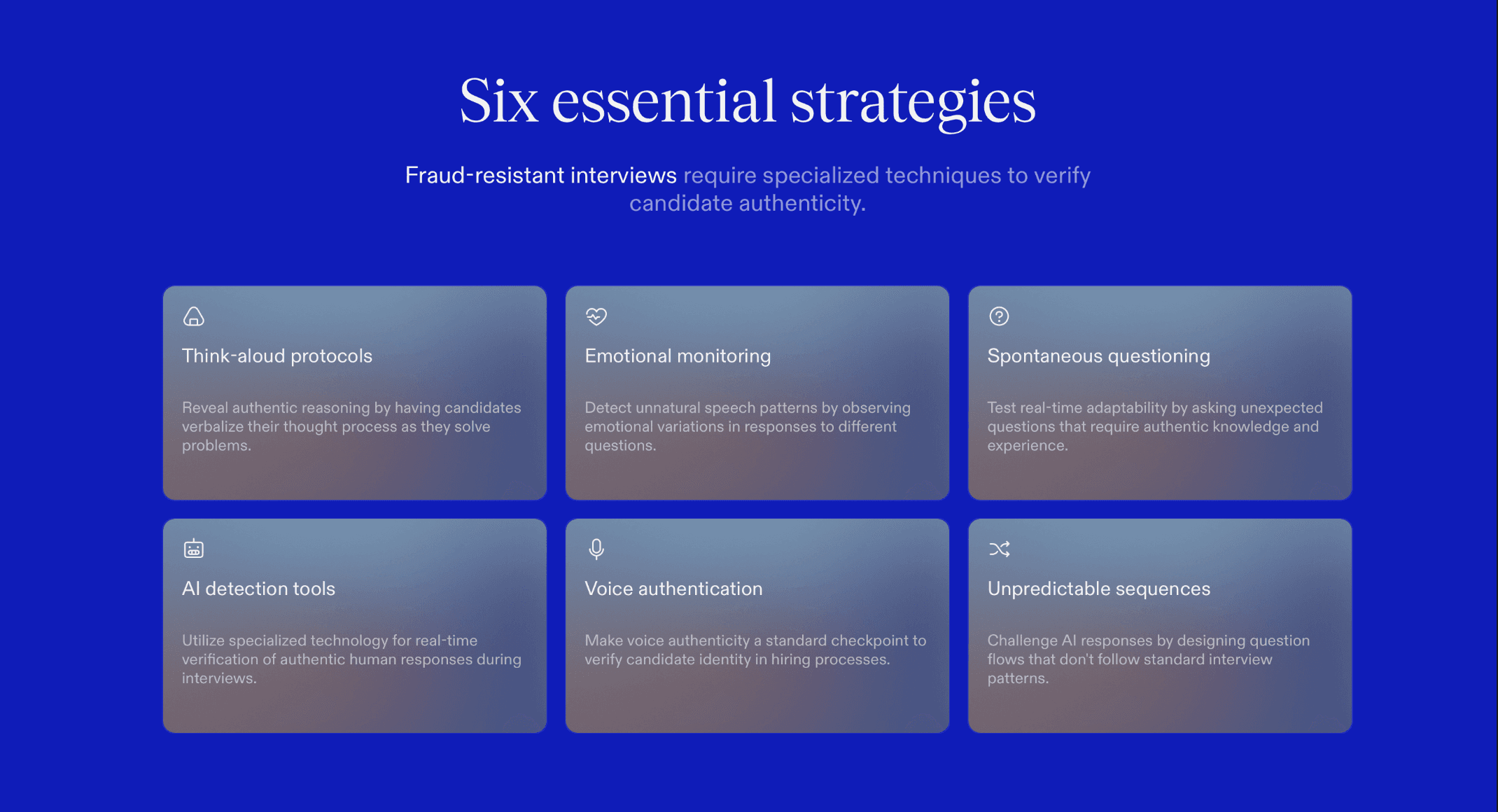 To ensure interview integrity and reduce the risk of synthetic voice fraud, recruiters should adopt the following preventive measures: