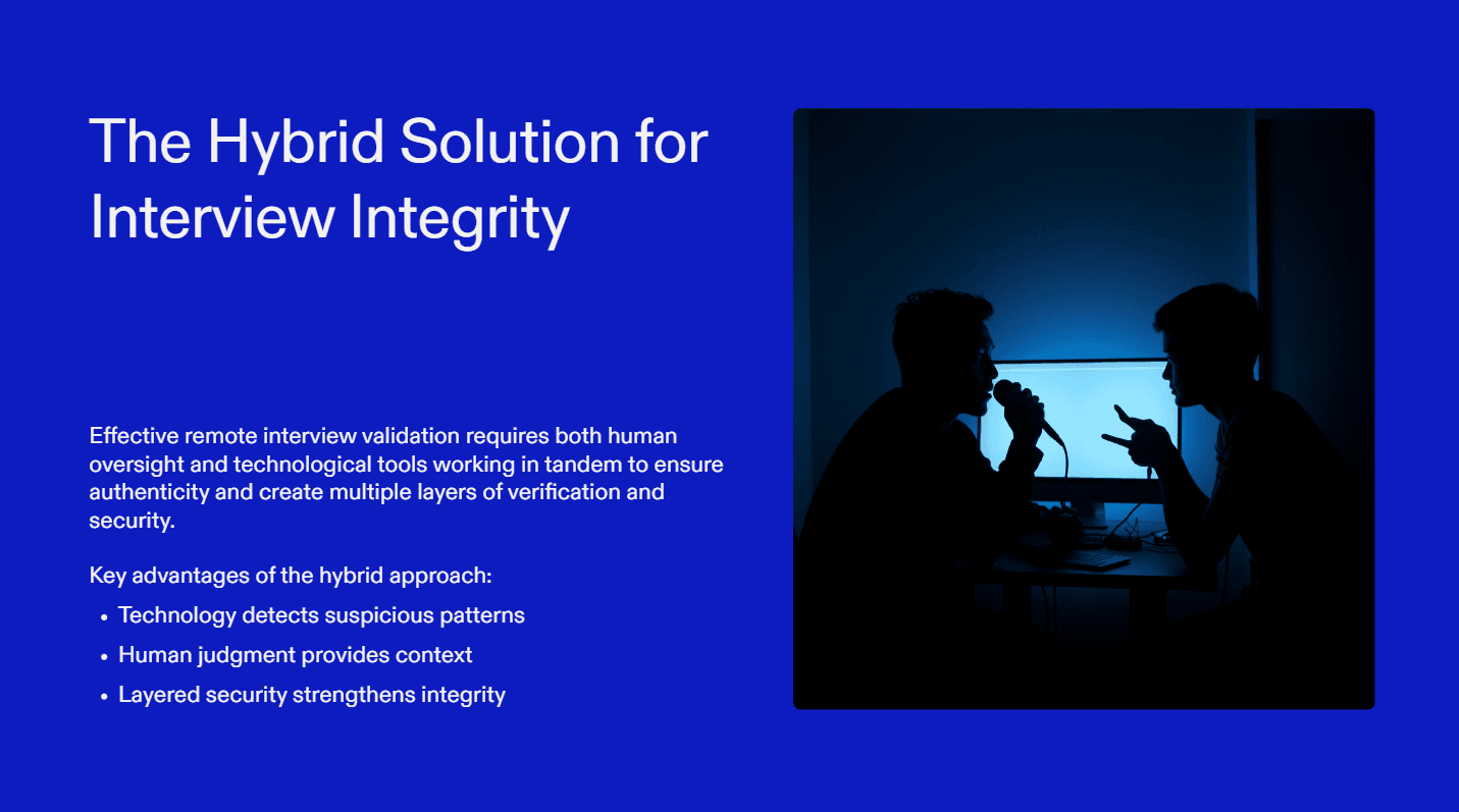 Without dedicated interview integrity checks, even experienced interviewers struggle to identify fraud. Remote interview fraud requires a combination of human judgment and intelligent technology.