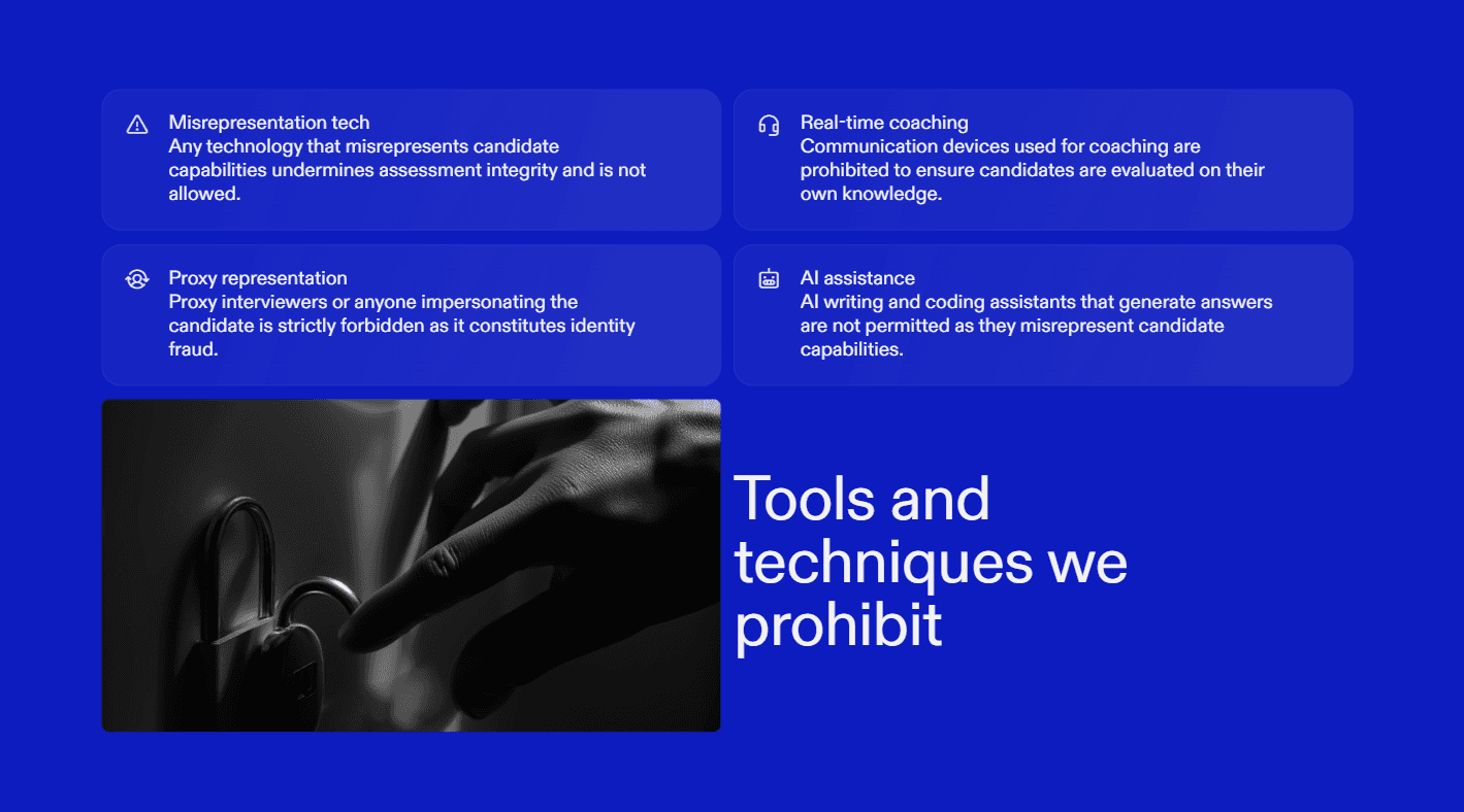 Letting a proxy complete coding, design, or case rounds for you | Misrepresentation of skill |