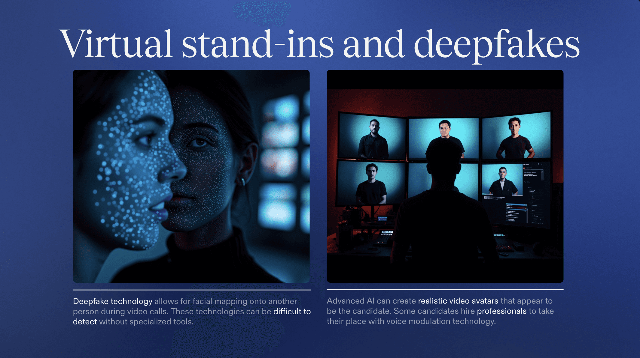 Where possible, use interview platforms that detect tab changes, multiple displays, or virtual audio devices.