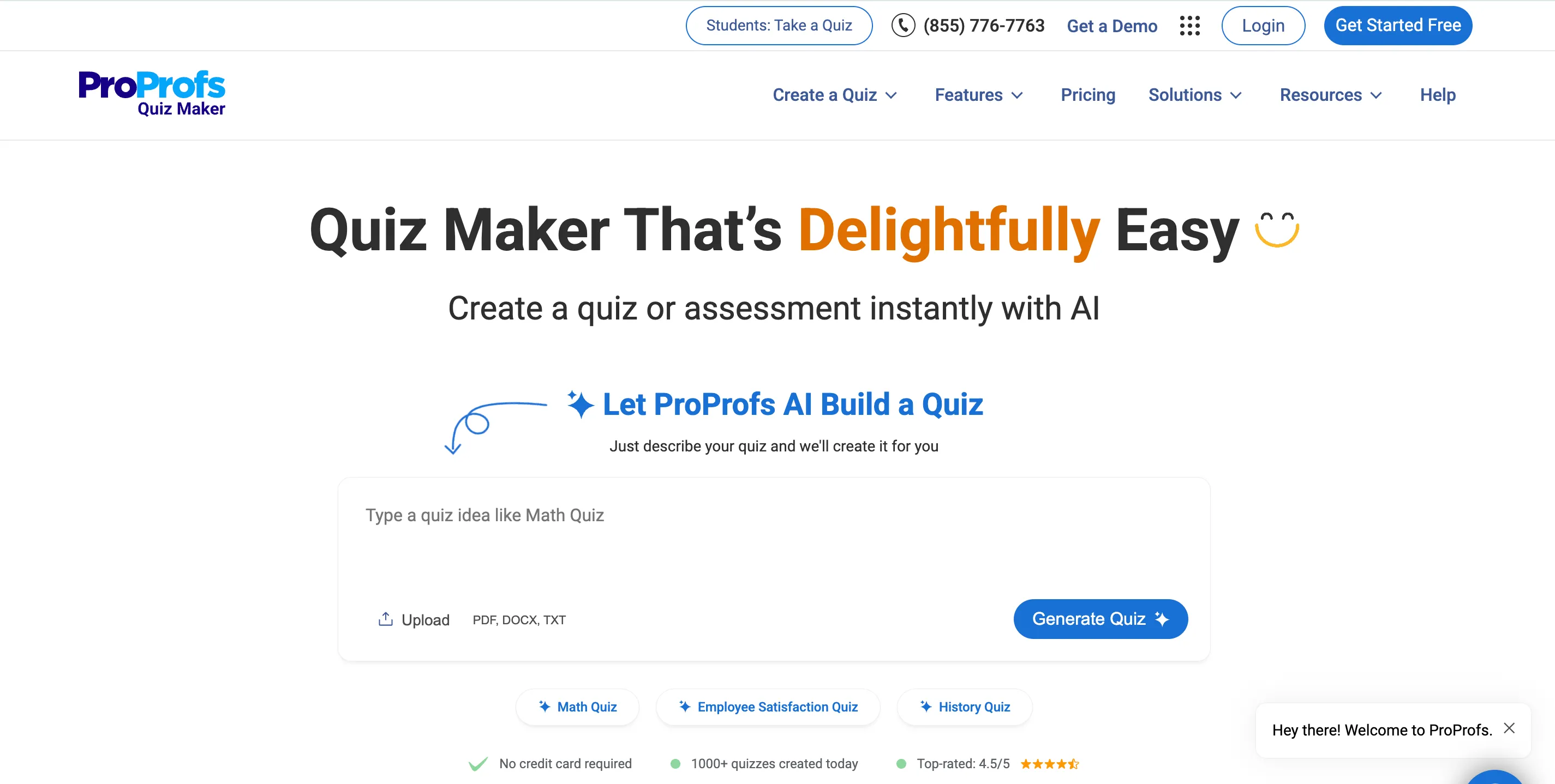 ProProfs Quiz Maker is an online platform for creating and delivering quizzes, tests, and assessments with basic proctoring and security features. It serves as a practical Quilgo alternative for educators and businesses conducting low- to medium-stakes online assessments.