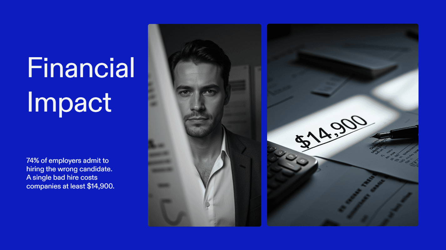According to a CareerBuilder survey, 74 % of employers admitted to hiring the wrong person, and many organizations reported that a single bad hire cost them at least $14,900 or more in wasted time and resources.