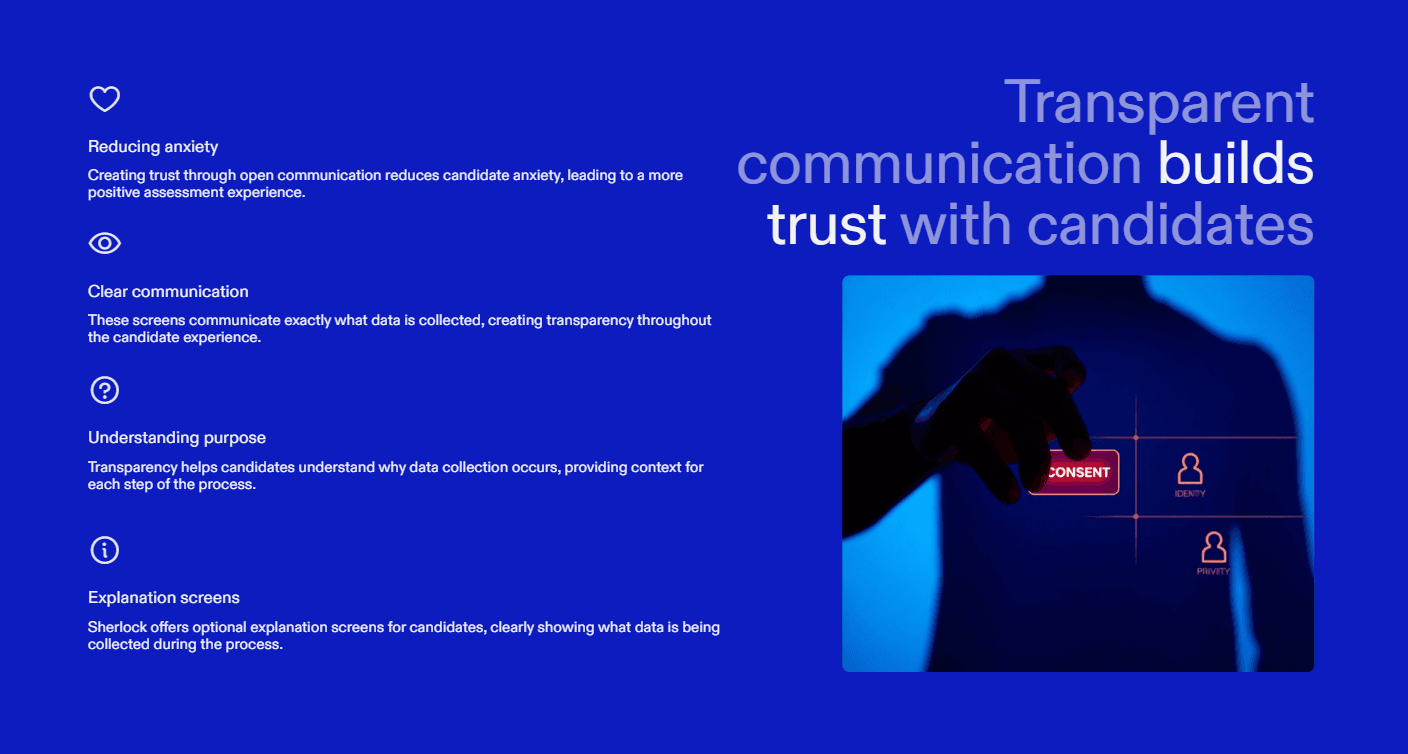 Sherlock provides optional candidate-facing explanation screens to ensure candidates understand what is collected and why.