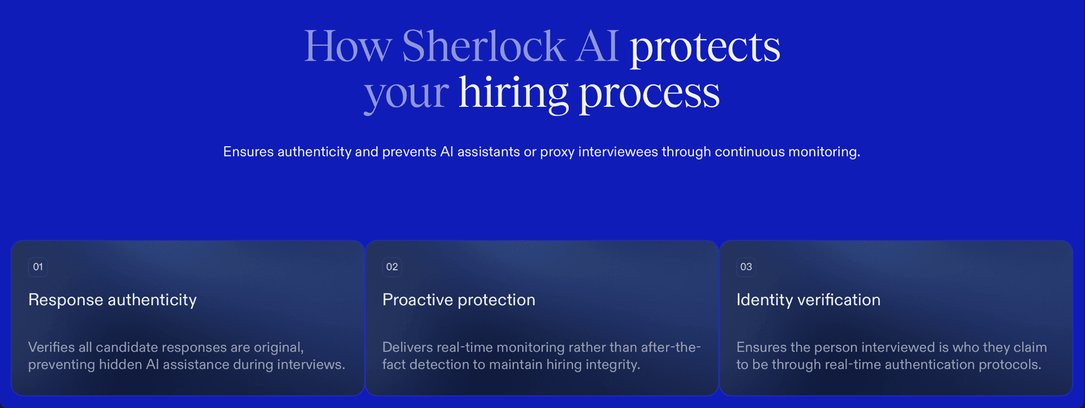 Sherlock AI is an interview integrity platform built specifically to combat AI-driven hiring fraud.