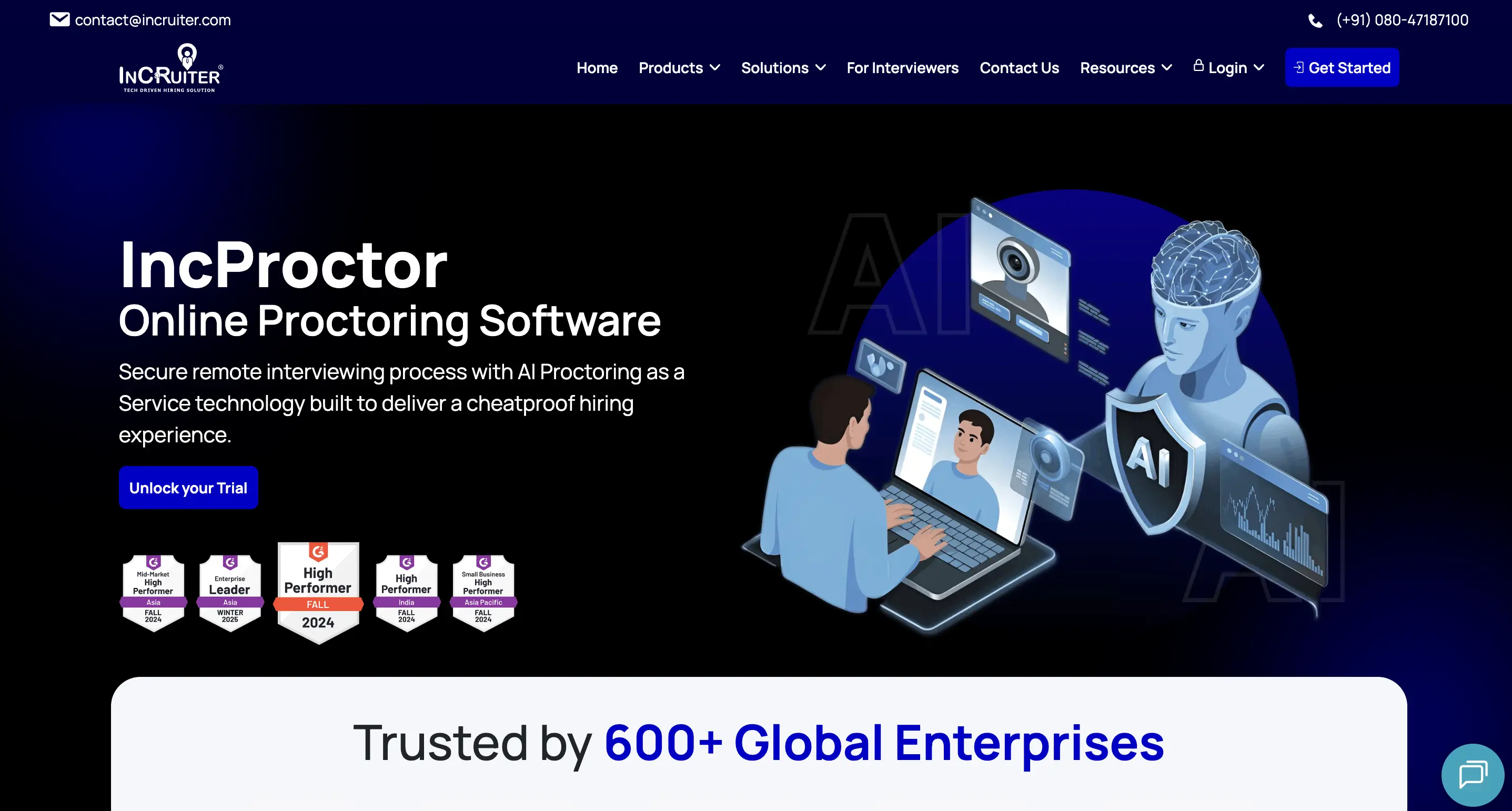 IncProctor is an AI‑powered proctoring solution from InCruiter that helps organizations verify candidate authenticity in virtual interviews and assessments by continuously monitoring for irregular behavior, unauthorized assistance, and proxy participation throughout live sessions.