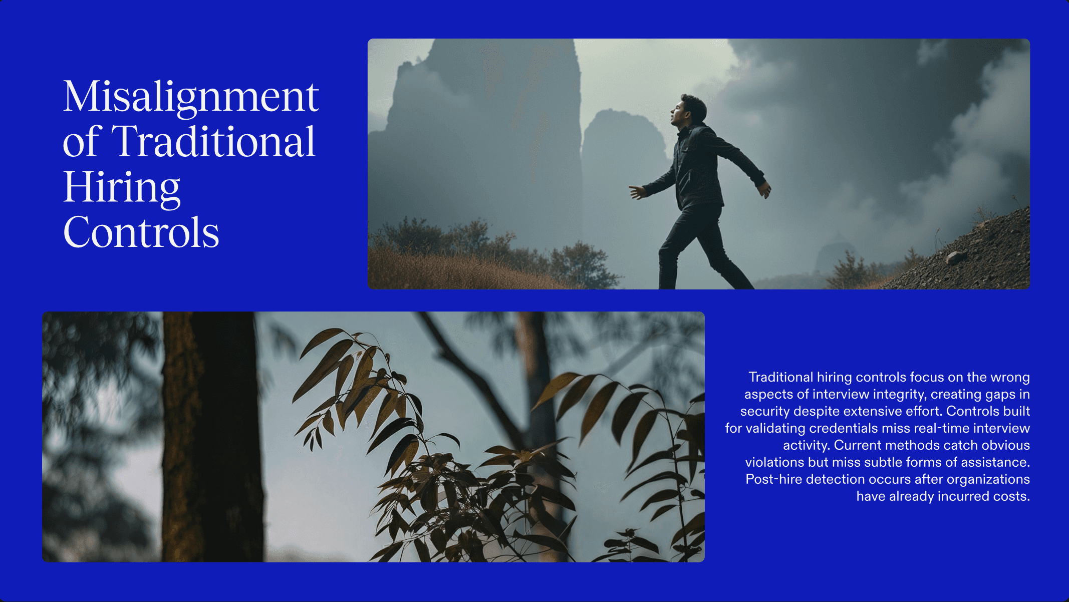 At the interview stage, where skills, identity, and authenticity should come together, traditional controls fall short: