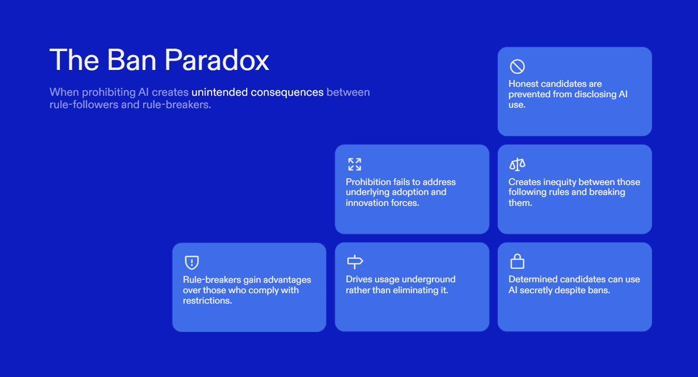 Find out why a full AI ban in hiring can backfire and how balanced policies lead to better, more accurate interviews.