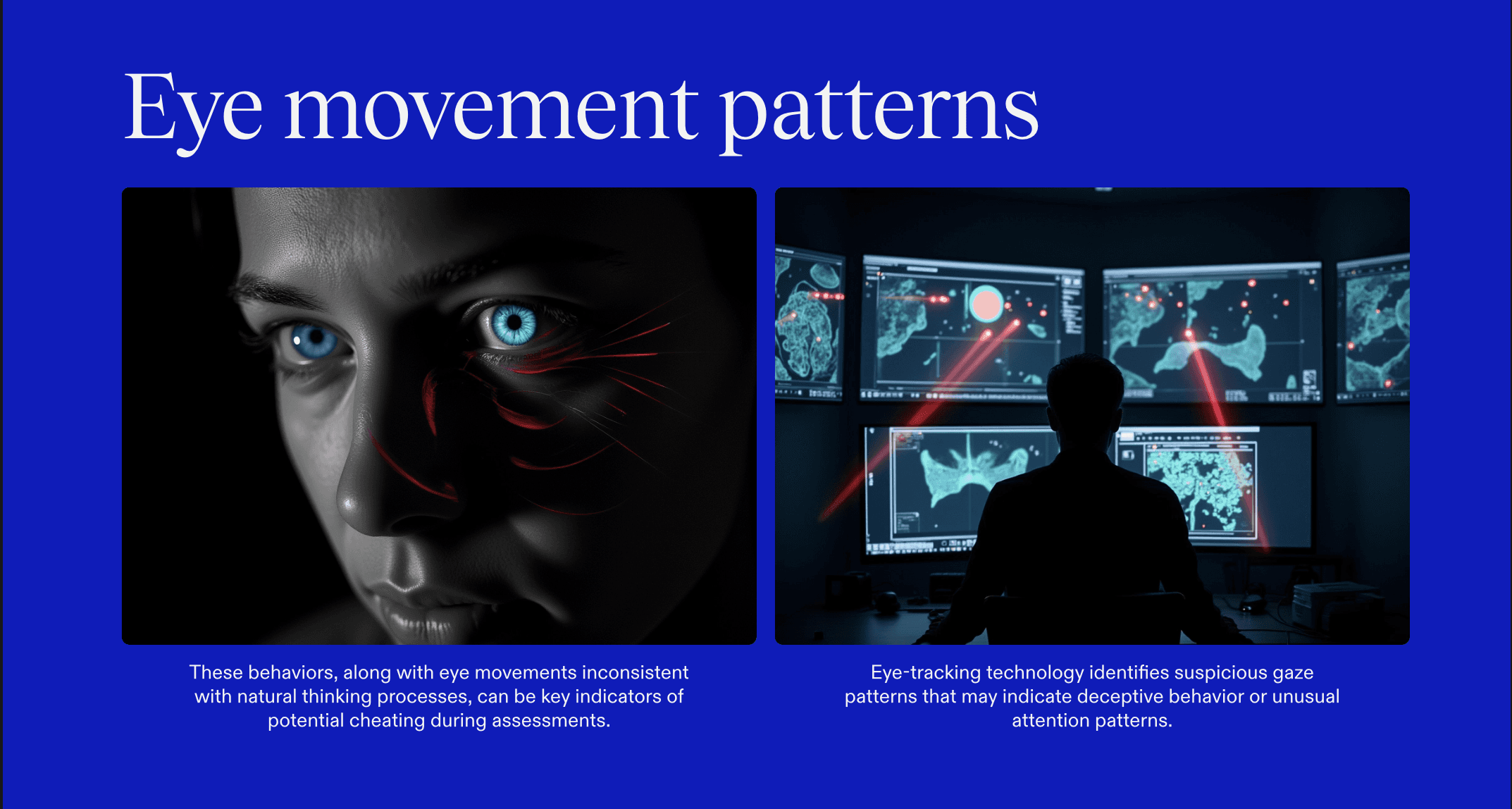 Second-screen and hidden device detection – Uses gaze and head-movement analysis to surface off-screen phones, secondary monitors, and external answer feeds.
