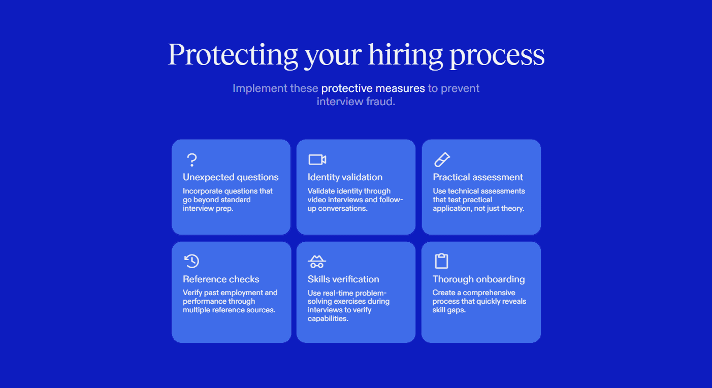 Identity verification | Proxy interviewing becomes nearly impossible |
